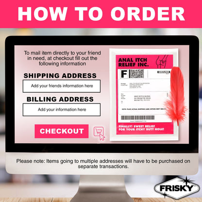 We all have that one friend. Maybe YOU are that friend. You know, the one who likes to play pranks and has a dirty sense of humor? Well, here's a fun joke gift to give to your friends! With this Anal Itch Relief pack you can discreetly and carefully take care of that stubborn itch! No need to see a doctor, this is the finest remedy known to man and used for thousands of years! Simply mail using the bubble mailer package with the feather enclosed and you or your friend will be in possession of a certain cure in no time!