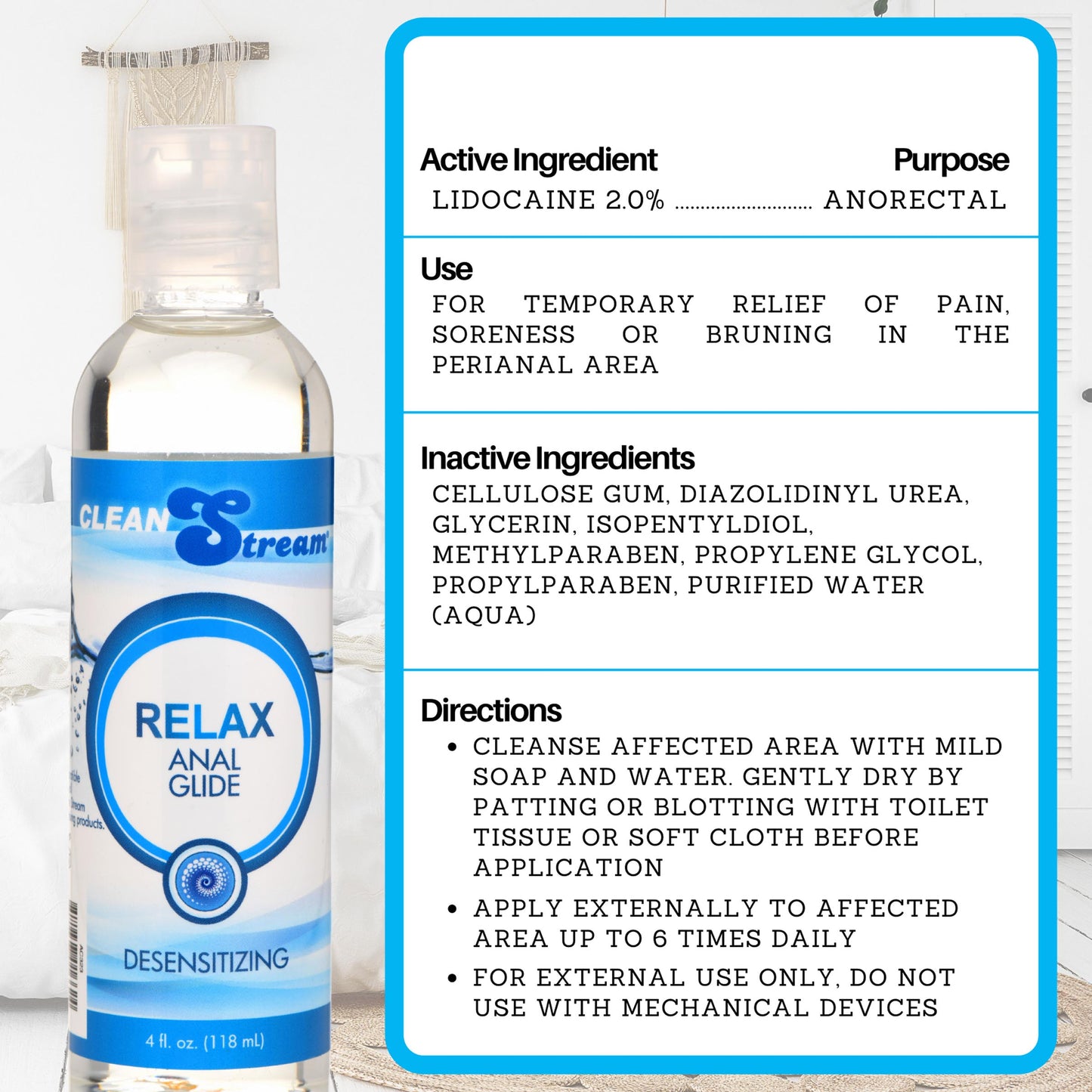 Relax Anal Lubricant is a desensitizing lube that can help ease some of the potential discomfort associated with anal play. This silky smooth liquid keeps unwanted friction at bay, and offers a light numbing effect to help keep things comfortable during backdoor exploration.