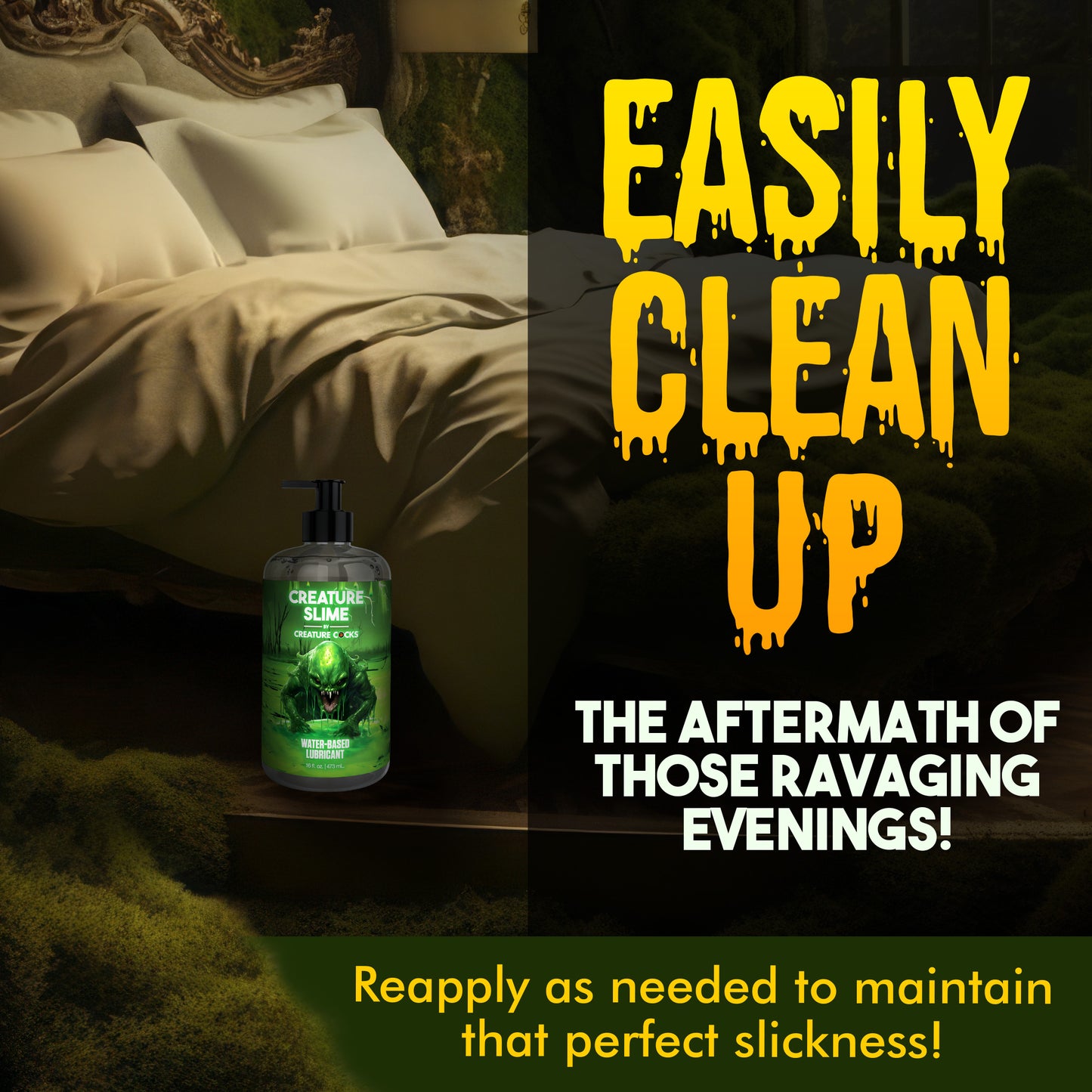 This Creature Slime lubricant is super slippery and ready to get all your cracks, crevices, and holes nice and wet! Get ready for water-based slime that will drip without staining. Completely odorless, this unscented lube is also glycerin-free so it won't mess up your pH and is safe to use internally! Clean-up is easy, too! Use water and soap to clean off the lube. Feel free to use it with any toy or person! It is compatible with all toys and made for sensitive bodies. Let your inner creature run free and get wet!