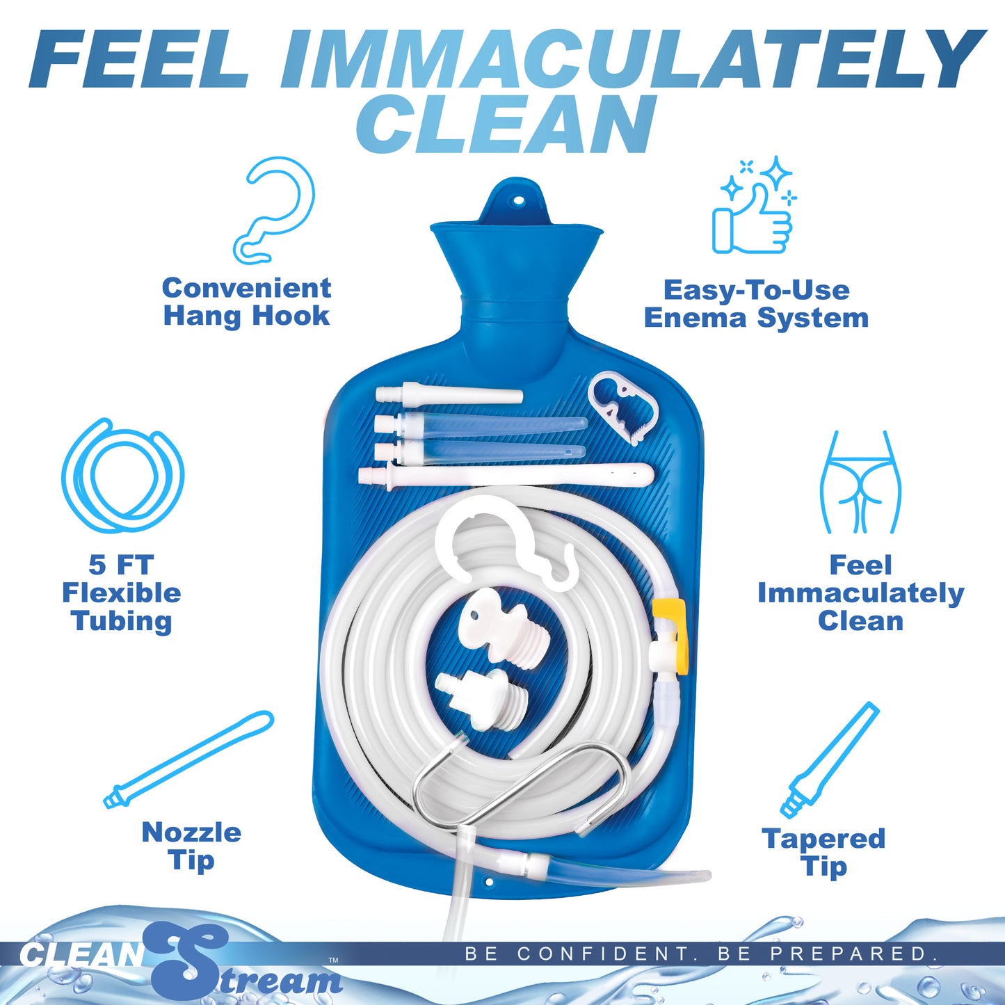 Enjoy feeling fresh as often as you like with this easy to use enema kit! Simply put it all together, choose the tip of your preference, and then hang it up and fill it with fluid. The feeling of getting filled up is both vulnerable and exhilarating! It puts pressure on your most sensitive organs while also cooling or warming you up. People have used enemas medicinally, but they can be used for fun as well! If you've got a hot date and you intend to let them get deep, deep inside your derriere, an enema is a perfect way to ensure cleanliness! Make sure to allow yourself plenty of time to fully evacuate all the fluid inside after filling yourself up. It can take several trips to the toilet to allow it all to come out. Walk around and let your body move as the fluids move, and stay nearby a toilet for 30 minutes to an hour after a deep, full cleanse. Then you can feel refreshed and ready for a fun night ahead, or simply do it to feel good yourself!