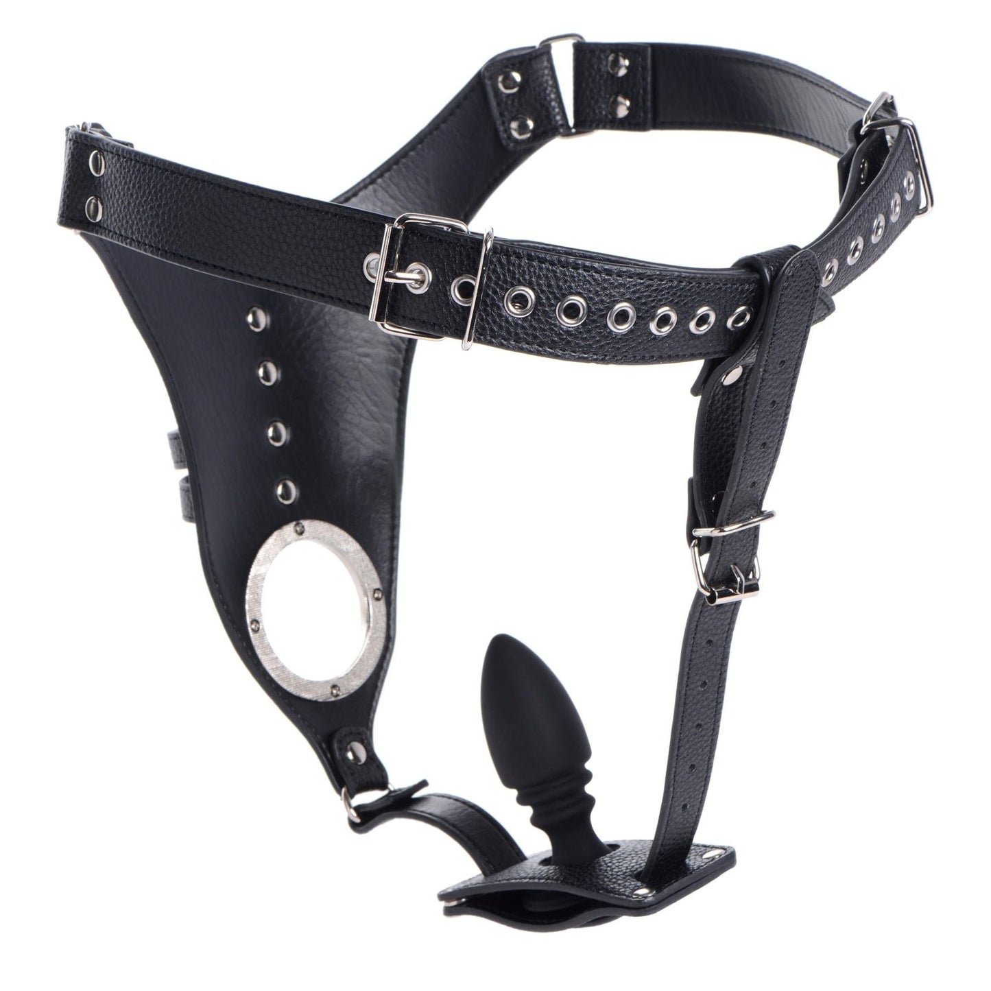 The included removable anal plug fits securely in the crotch strap, penetrating your subs asshole while they are strapped in for even more fun! This harness is fully adjustable at the waist and the crotch strap so you can find the perfect fit for your unique body.