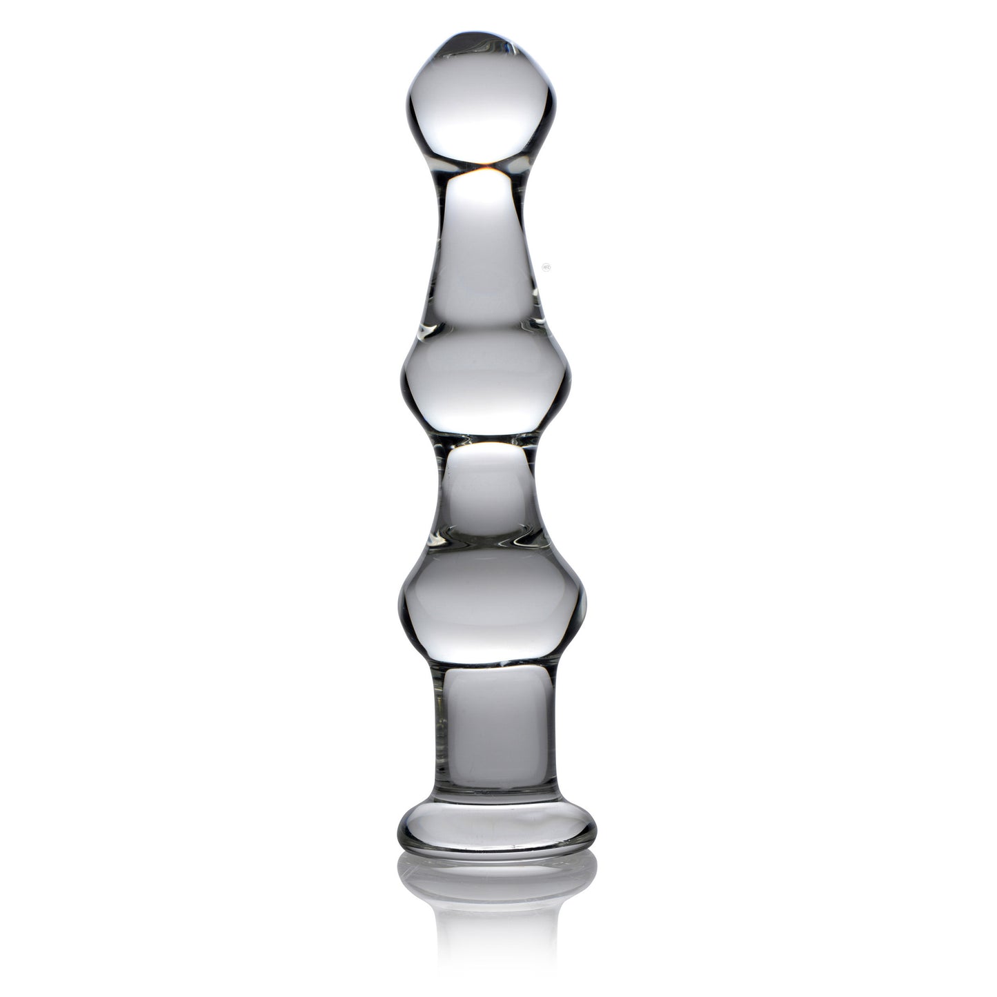 Penetrate yourself with a beautiful glass dildo, distinctly shaped for explorations of ecstasy! The three-bump design allows you to move at your own pace as you pleasure yourself vaginally or anally, savoring the smooth, hard material. This shatter-resistant glass is perfect for experimenting with temperature play, heating or cooling the dildo in water before insertion. Because it is non-porous, you can always ensure a thorough sanitization with mild soap and warm water. Glass is hypoallergenic and can be used with any lubricant of your choosing.