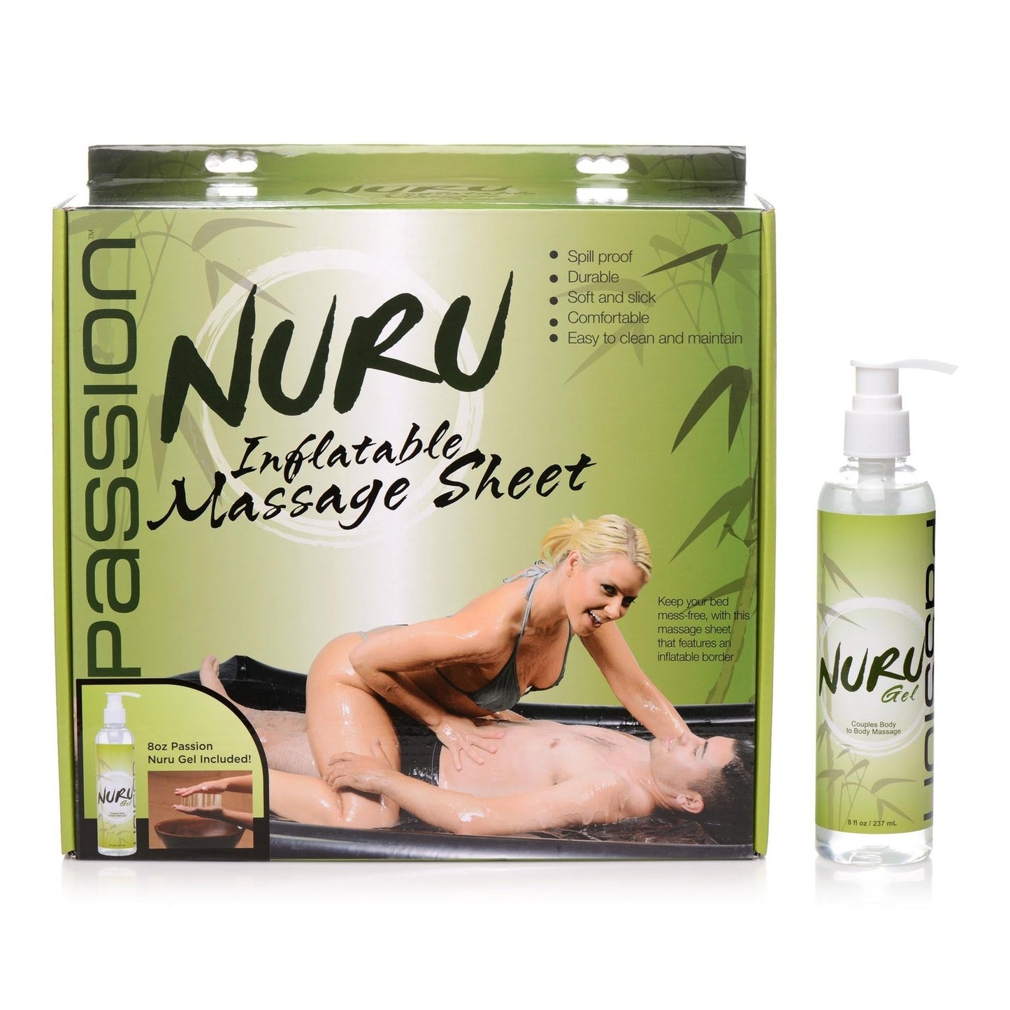 The durable vinyl sheet is waterproof, oil and gel proof and spill-proof. The soft and comfortable sheet has an inflatable border that keeps the oil from spilling over the sides of the sheet onto the floor. Included in the package is nuru massage body gel, a perfect pairing for this nuru massage sheet