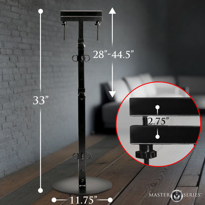 Transform your space into an authentic dungeon with the Pillory CBT Tower. Constructed from heavy-duty steel, this tower is built to withstand intense kink scenes. Easily adjust the height from 28 to 44.5 inches to cater to various leg lengths so the pillory stands directly at the level of the hips. There are four D-ring attachment points and four carabiners offering bondage possibilities for legs and ankles or places to hang accessories from. The pillory clamp can grip the shaft or testes firmly, ensuring your partner remains securely in place. The most common placement is right behind both the balls and shaft where a C-ring would normally be positioned. Adjust the screws to control the clamp's tightness. Get ready to dive into a realm of medieval punishment with this durable, kinky tower designed for the ultimate obedience from any CBT-loving submissive!