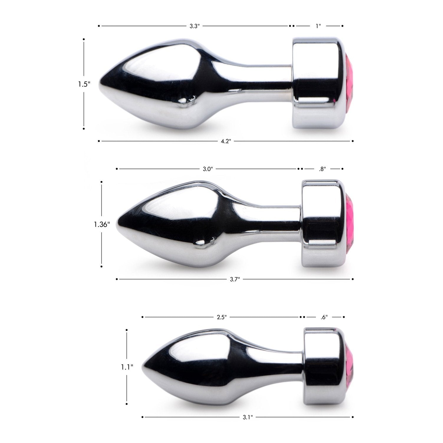 Adorn your derriere with this dazzling pink gem! The weighted base adds a comfortable and satisfying weight to your anal play, opening a new world of sensation for enthusiasts. The plug is made with nickel free aluminum alloy, perfect for temperature play – heat it up or cool it down for even more sensation.