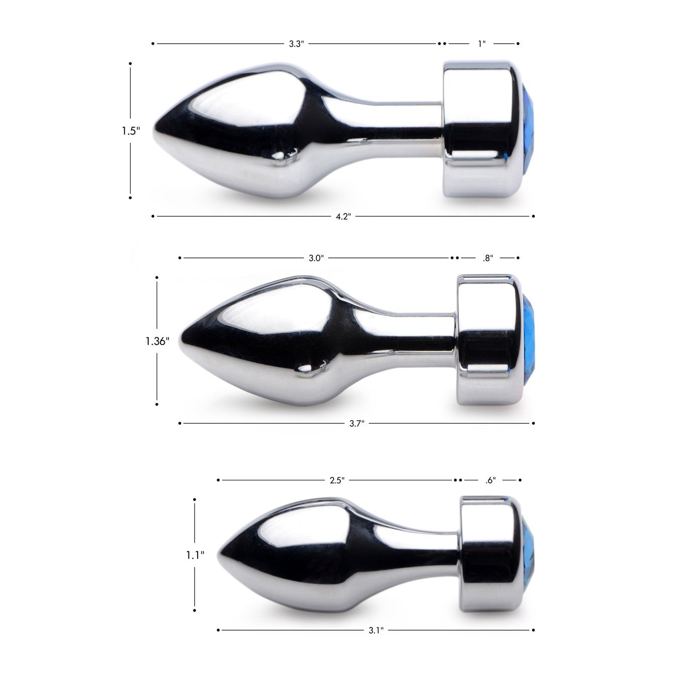 Adorn your derriere with this dazzling blue gem! The weighted base adds a comfortable and satisfying weight to your anal play, opening a new world of sensation for enthusiasts. The plug is made with nickel free aluminum alloy, perfect for temperature play – heat it up or cool it down for even more sensation.