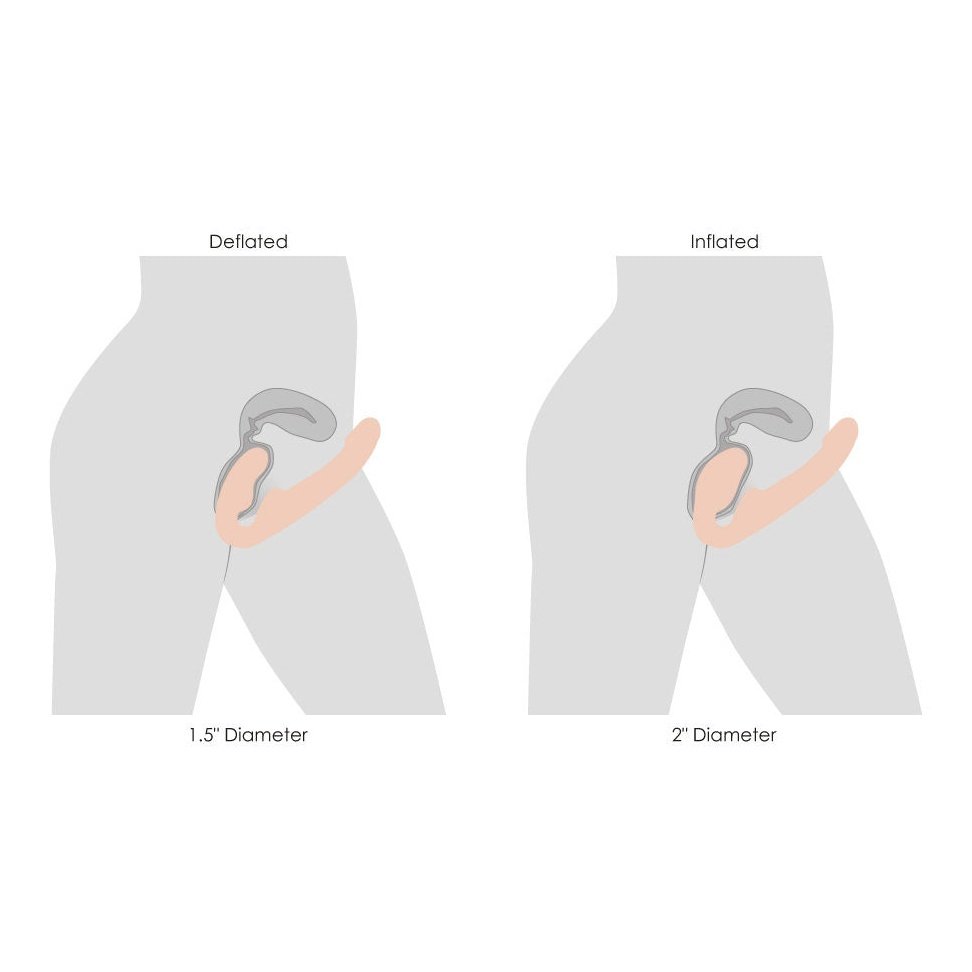 Measurements: Overall length 9.4 inches, dildo insertable length 5.6 inches, dildo width 1.5 inches. Vaginal bulb insertable length 4.5 inches, vaginal bulb width 1.5 inches, vaginal bulb width inflated 2 inches.