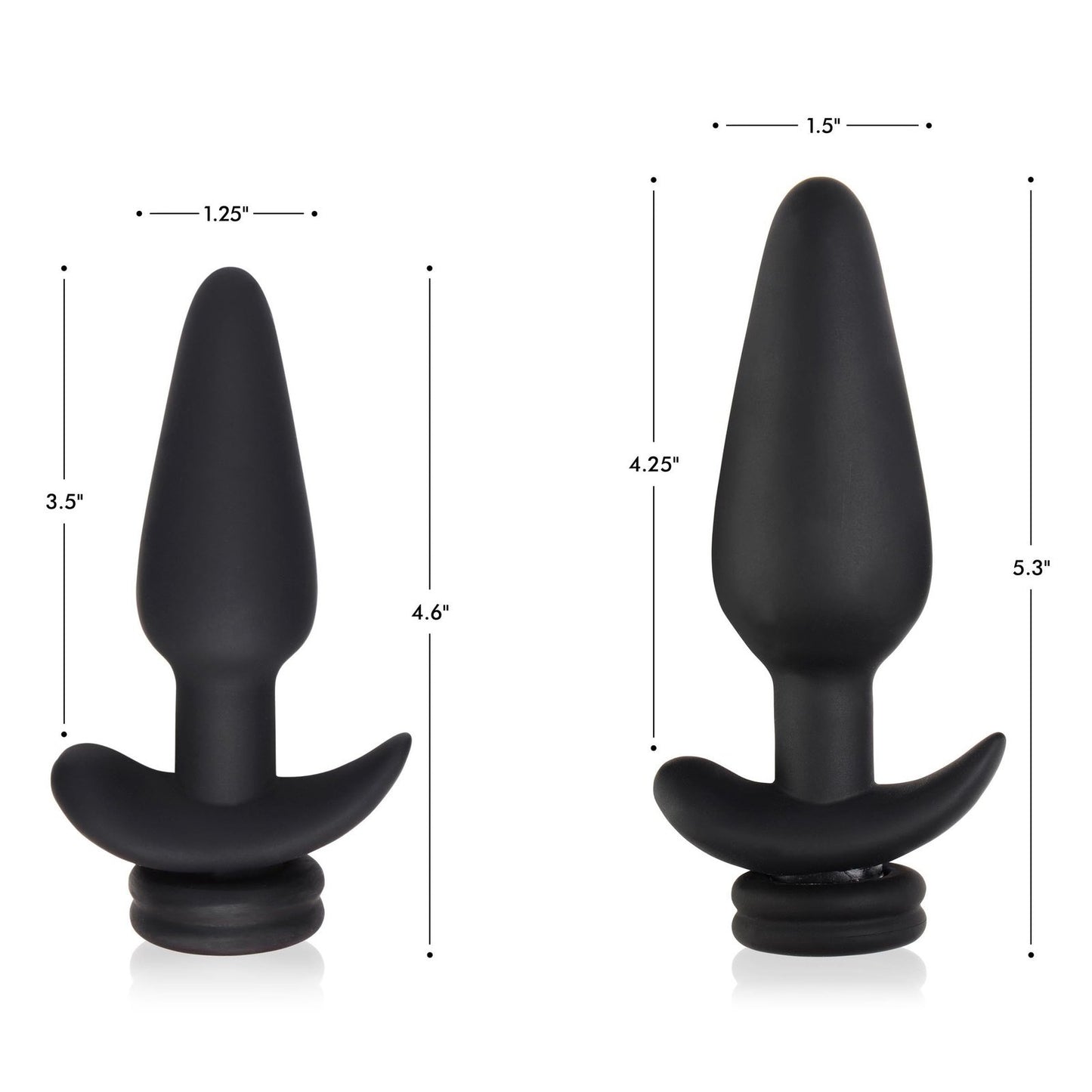 Measurements: Overall length: 5.3 inches, insertable length: 4.25 inches, widest insertable diameter: 1.5 inches