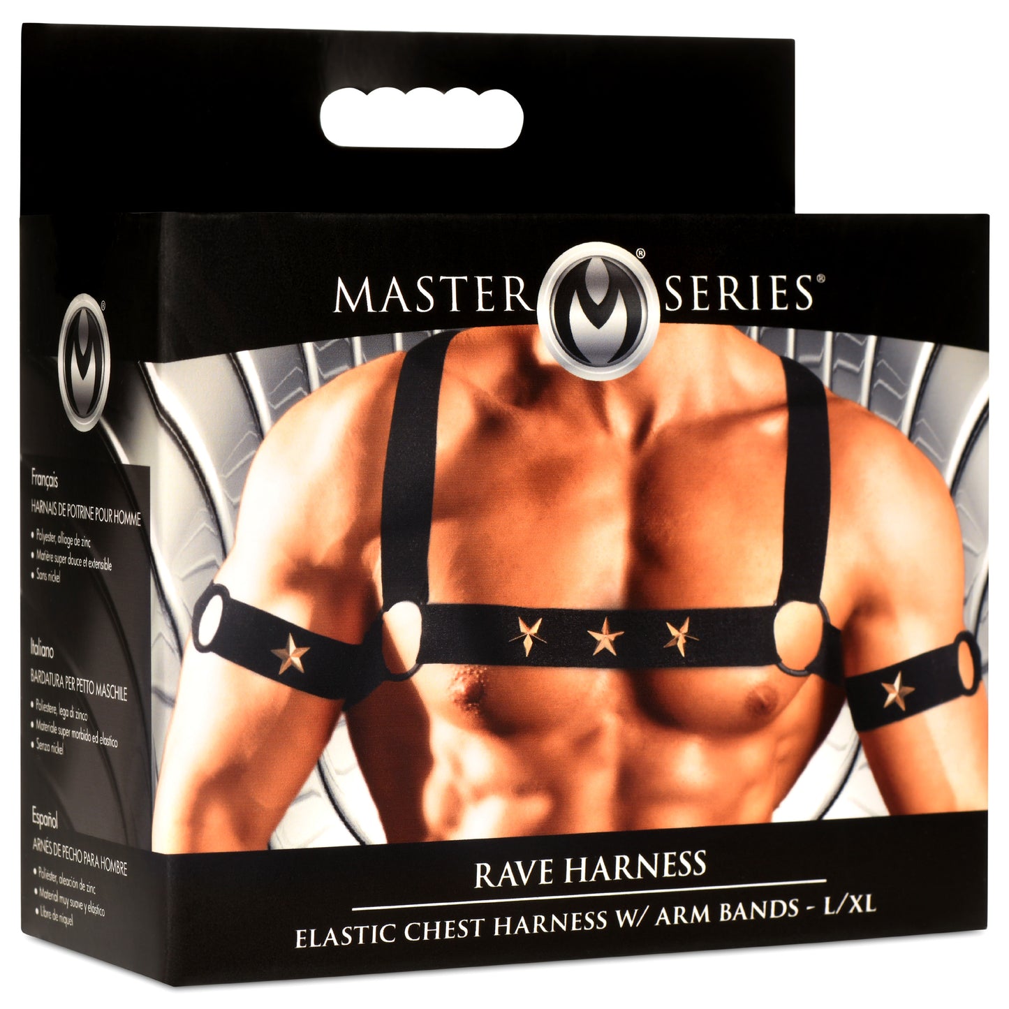 Add some flair to your wardrobe with this comfortable, stretchy harness and armbands! The nickel-free, metal stars adorn the front of the harness and the armbands to easily go with any type of outfit! The stretchy material is soft against the skin, easy to hand wash or machine wash, and gives you a snug fit that shows off your chest and arms!