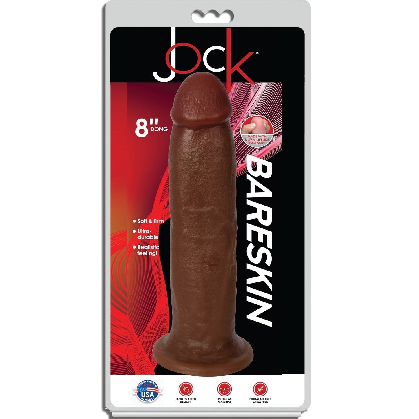 Jock Bareskin is made with a proprietary, low-density, super-soft and extremely realistic-feeling material that mimics but is more affordable than dual density dildos. The new exclusive Bareskin formula is made with high-grade USA ingredients.