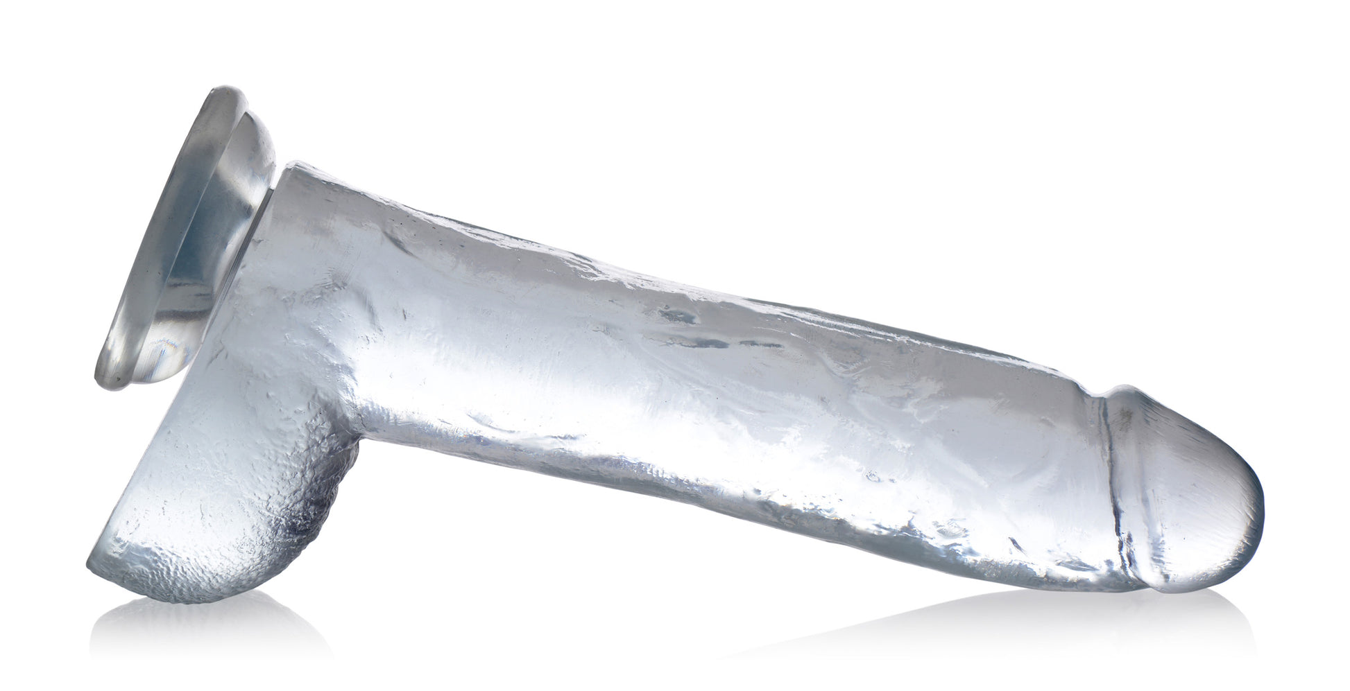 Firm yet pliable, this clear dong is a dream to squeeze and flexible enough to stay comfortable during rougher sessions. The strong suction cup base lets you play hand free with any smooth and flat surface –secure this transparent shaft and get down to business without it slipping or falling over. The suction cup base also makes this thick dick compatible with most strap on harnesses so you can peg or be pegged with a thick, dependable dong whenever the mood strikes.