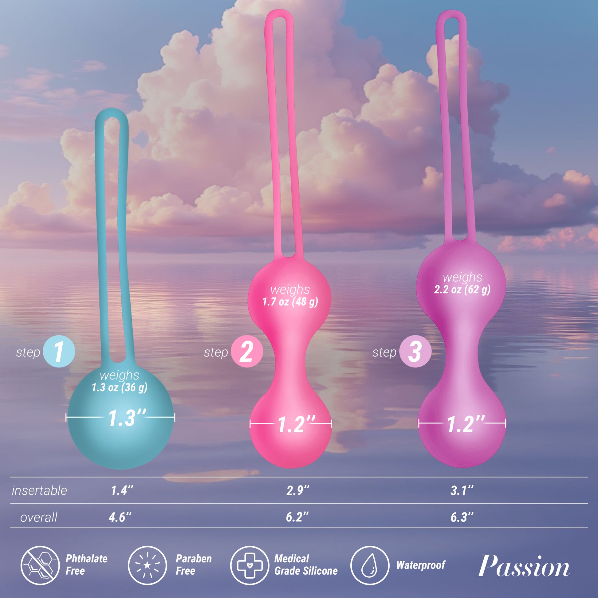 Ready to strengthen your pelvic muscles and enhance pleasure in the bedroom? This premium weighted Kegel ball set provides an effective, body-safe solution. Crafted with smooth, seamless silicone and designed with a range of weights from 1.3 oz to 2.2 oz, they offer tailored intensity for strengthening exercises. Regular use leads to improved muscle control and heightened pleasure during intimate moments. With a pull-cord for effortless removal, they're built for ease and comfort. Achieve stronger pelvic muscles and enhance your personal wellness today.