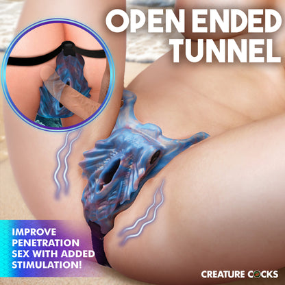 Experience the allure of the deep sea with the Siren Snatch Silicone Strap-On! This magical piece covers your vulva, turning it into a beautiful, shimmering blue mermaid snatch. Your partner will delight in the exhilarating vibrations, which you control through a rechargeable bullet featuring 4 speeds and 7 delightful patterns. The adjustable nylon straps ensure a secure and comfortable fit, while your backside remains exposed for extra fun. Made from top-tier, body-safe silicone, this splashproof vibrating snatch guarantees a safe and captivating underwater adventure, right in your bedroom!