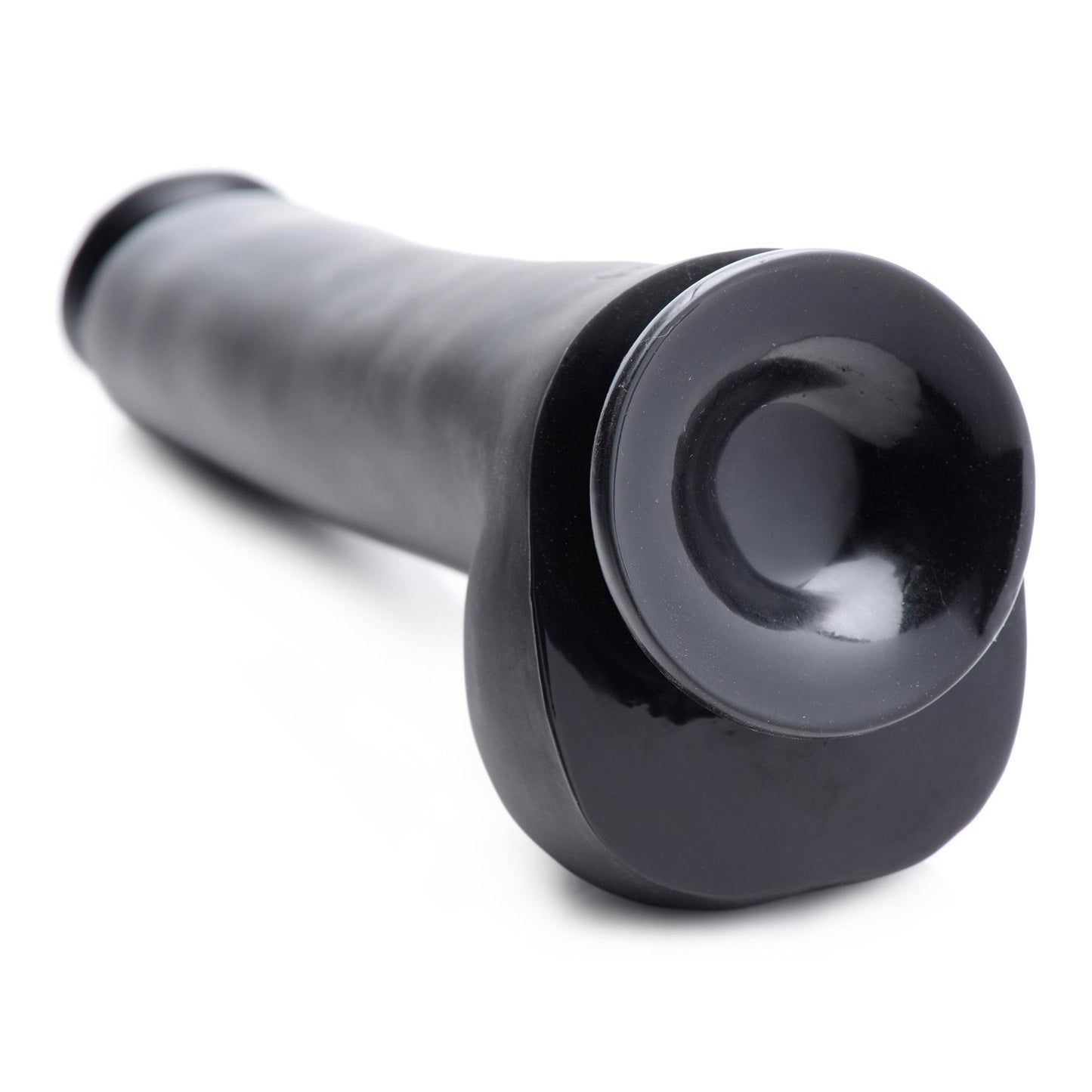 Get ready for The Master to fill you to your limits! This huge dildo features a realistic cock head and balls, with a suction cup base that lets you mount him to any smooth, flat surface for hands-free penetration. Impale yourself on the long, girthy shaft, savoring ever sleek inch as it slides in. How much of this big boy can you fit? The phthalate-free material is compatible with your favorite water-based or silicone lubricants. Clean thoroughly after use with mild soap or toy cleaner.